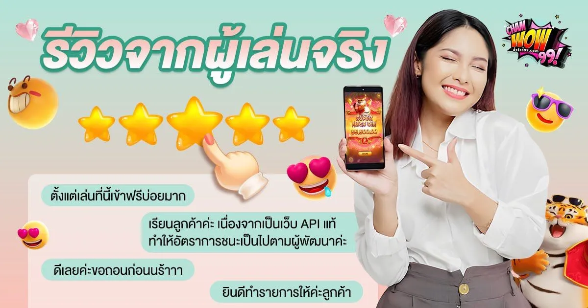 Chamwow99 เราใส่ใจทุกความต้องการของผู้เล่น และพร้อมมอบข้อเสนอที่ดีที่สุดให้เสมอ ไม่ว่าคุณจะเป็นผู้เล่นใหม่หรือสมาชิกประจำ ก็สามารถเลือกใช้โปรโมชั่นที่ตรงใจ เพื่อเพิ่มทั้งความสนุกและโอกาสชนะได้มากกว่าเดิม